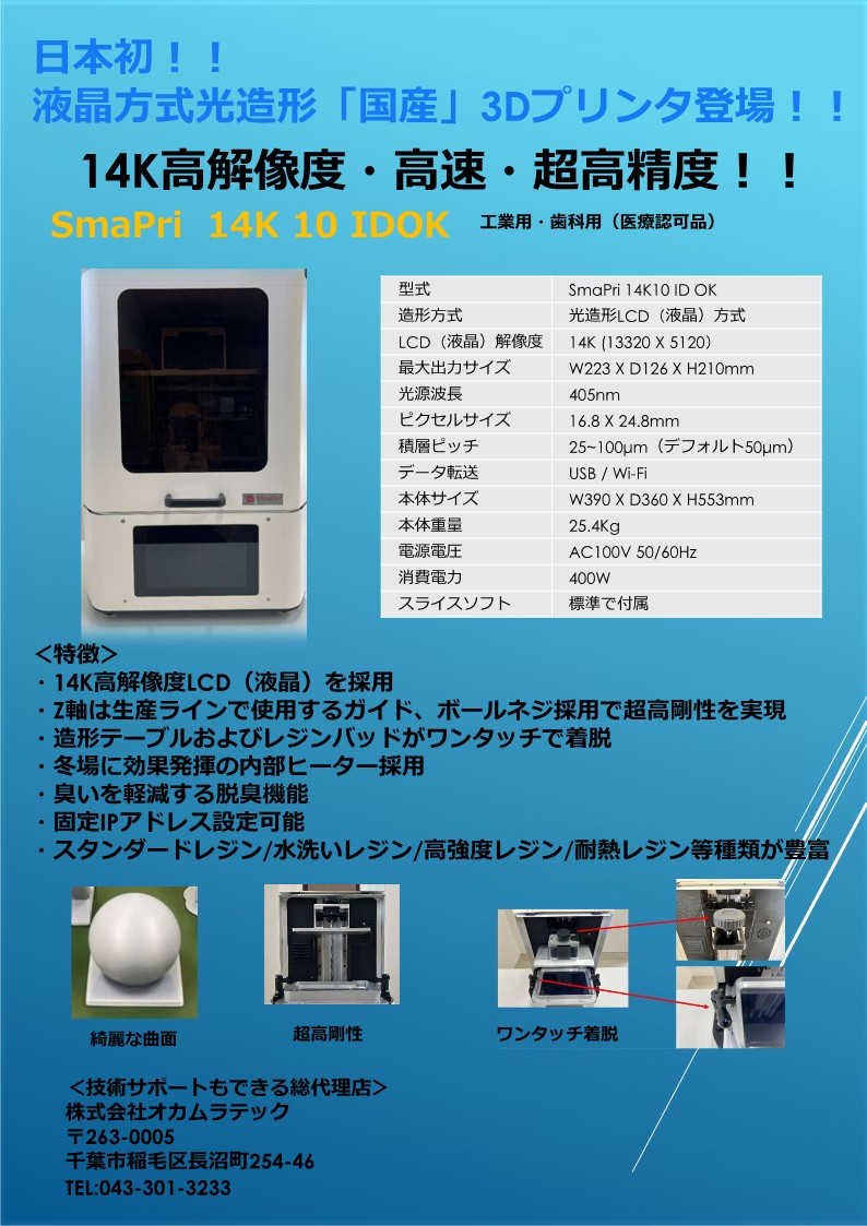 ・国産 新型歯科用3Dプリンタ登場 SmaPri14K10 DENTAL